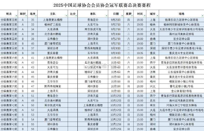 2025中冠联赛总决赛完整赛程正式公布